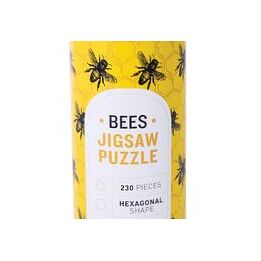 230 piece hexagonal shaped puzzle, measuring 35cm round when complete. Constructed from cardboard, the puzzle shows a repeated bee print. 200x70x70mm