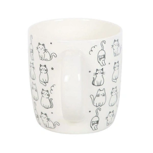 Ceramic white mug decorated with lovely printed designs of happy cats!  The perfect gift for the cat lover in your life!  It will make them smile and think of you (or their cat) whenever they use it for their morning coffee or tea!