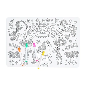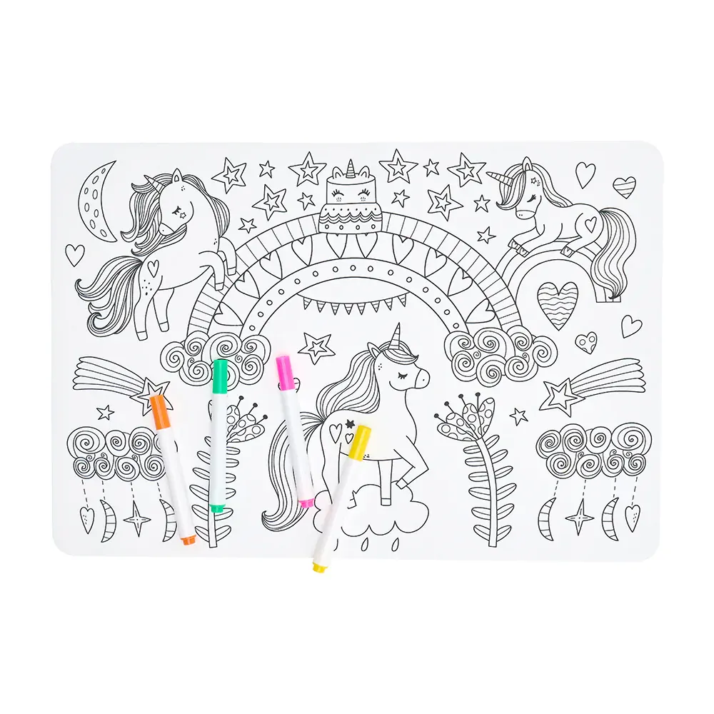 Add excitement to dinner and snack time with our latest Silicone Colouring Mat. Keep little ones engaged as they colour their favourite animals on this interactive placemat. Easily wipe clean with a damp cloth, allowing playtime to continue hassle-free. Each mat comes with 12 colouring pens included. Unicorns design.