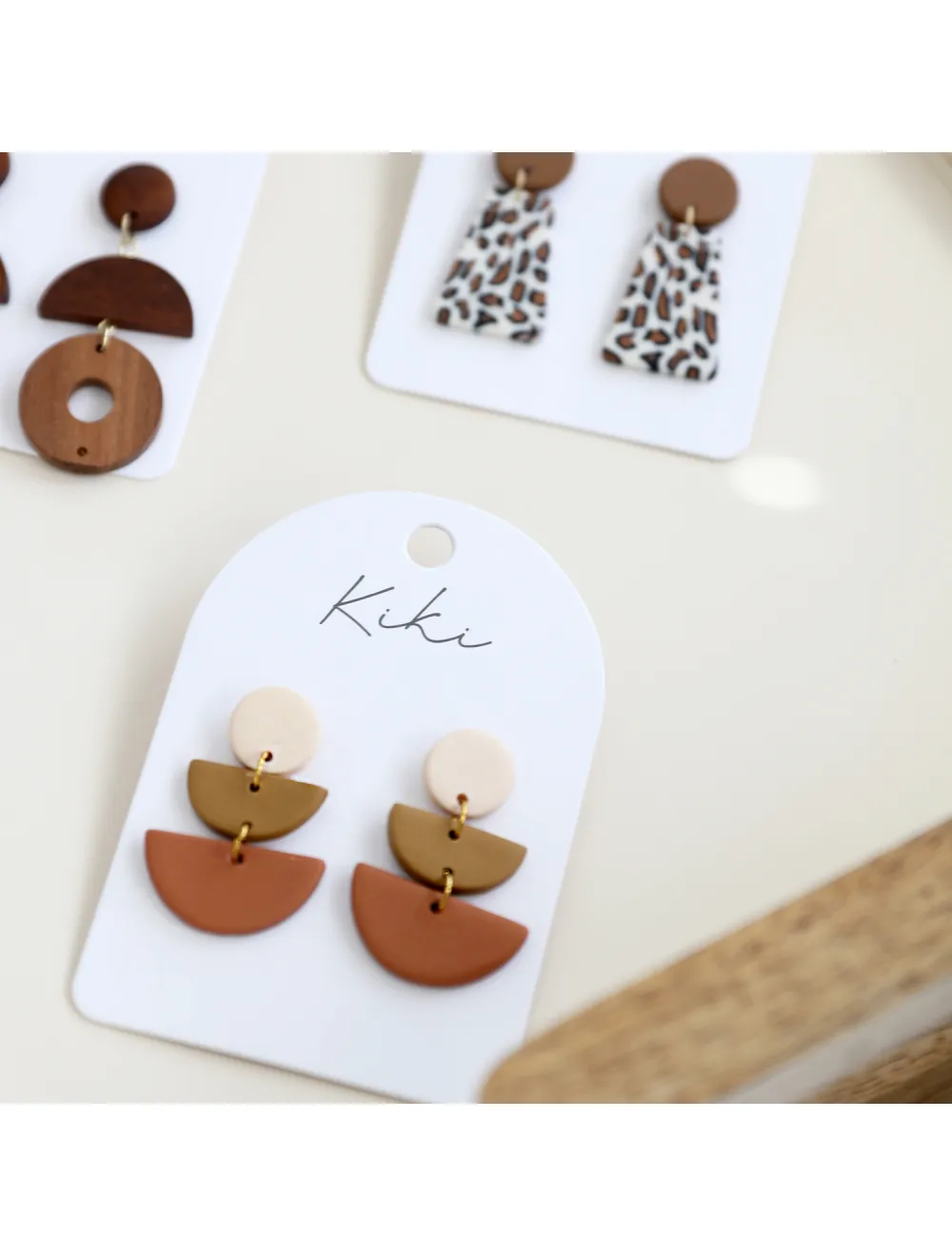 These stunning handcrafted lightweight earrings are designed to elevate style and and celebrate individuality. They feature 3 graduated sizes of semi circles in varying neutral shades, which mean that they can be worn with practically any outfit and look amazing!