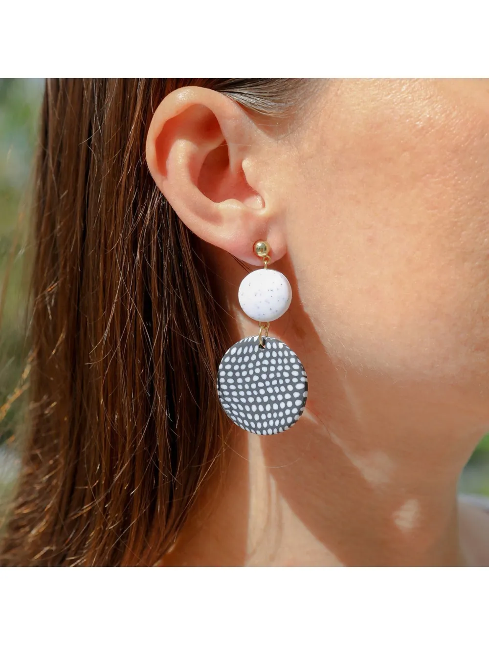 These striking handcrafted lightweight earrings are designed to elevate style and and celebrate individuality. They feature 2 monochromatic round sections, which mean that they can be worn with practically any outfit and look amazing!