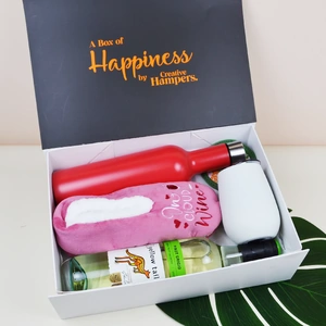 This stylish gift hamper is perfect for wine lovers who enjoy relaxing in comfort, whether at home or outdoors. It features an Annabel Trends insulated wine bottle to keep drinks perfectly chilled, paired with an insulated wine tumbler for easy, spill-free sipping.